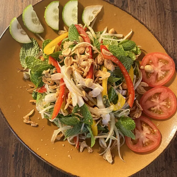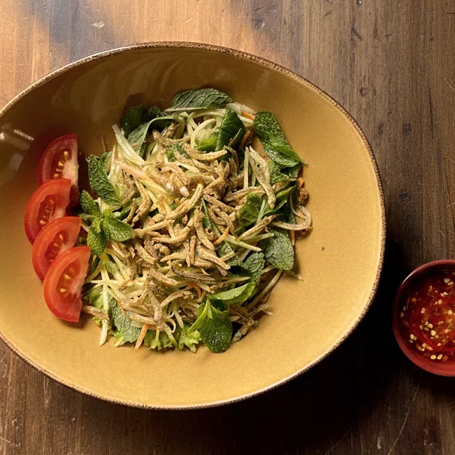 Mango salad with crispy anchovies