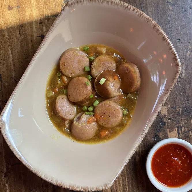 Smoked sausage bathed in our signature sauce